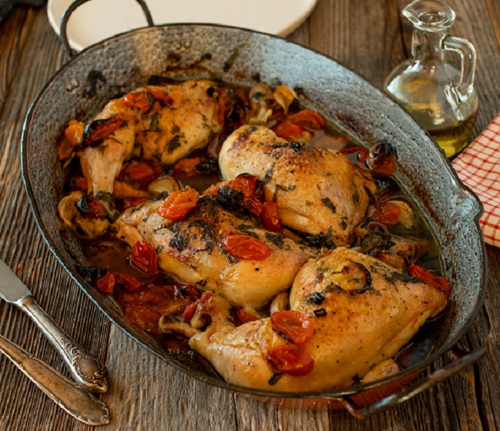 Μπουτάκια κοτόπουλου με ντοματίνια και δυόσμο