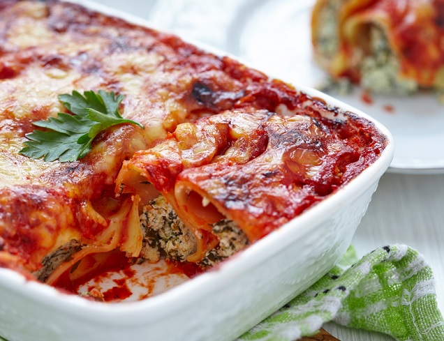 Κανελόνια με σπανάκι, ανθότυρο και σάλτσα ντομάτα