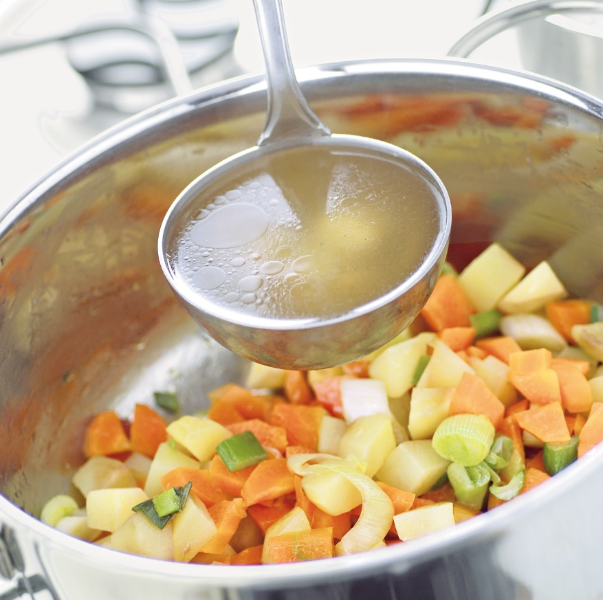 ΒΗΜΑ 1 Για το ζωμό: Καθαρίζετε και κόβετε σε κομματάκια τα κρεμμύδια, τη σελινόριζα και τα καρότα και βάζετε τα κομμένα λαχανικά μαζί με όλα τα υπόλοιπα υλικά του ζωμού σε μεγάλη κατσαρόλα. Τα αφήνετε να πάρουν βράση, κατόπιν μισοσκεπάζετε την κατσαρόλα και βράζετε για 50’. Όταν κρυώσει ο ζωμός, τον φιλτράρετε και τον κρατάτε στην άκρη.